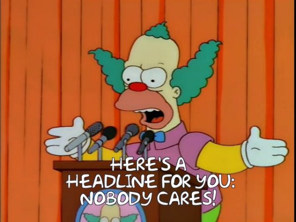 I've never been one for hugely inflammatory or click-baity titles. I generally opt for Simpsons references and alliteration to attract readers, as it makes me feel smart and important. I can appreciate how the title "Nobody actually fucking cares" would seem to break this trend, as it alludes to Dan having regressed to the emotional... Continue Reading →